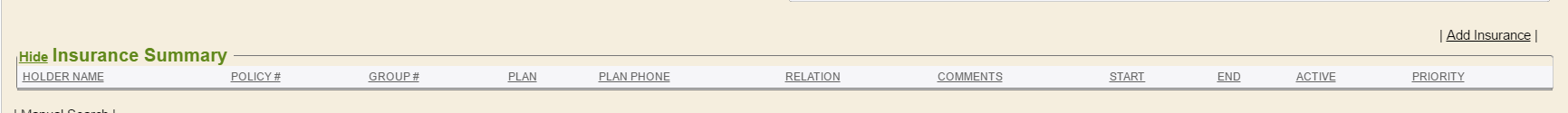 - Insurance Summary - Demographics Tab